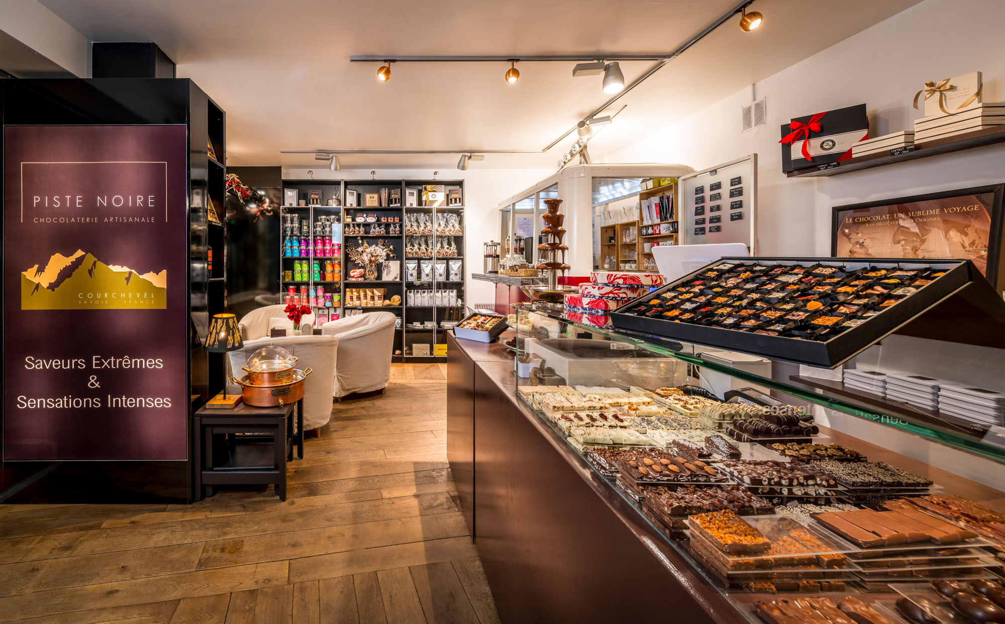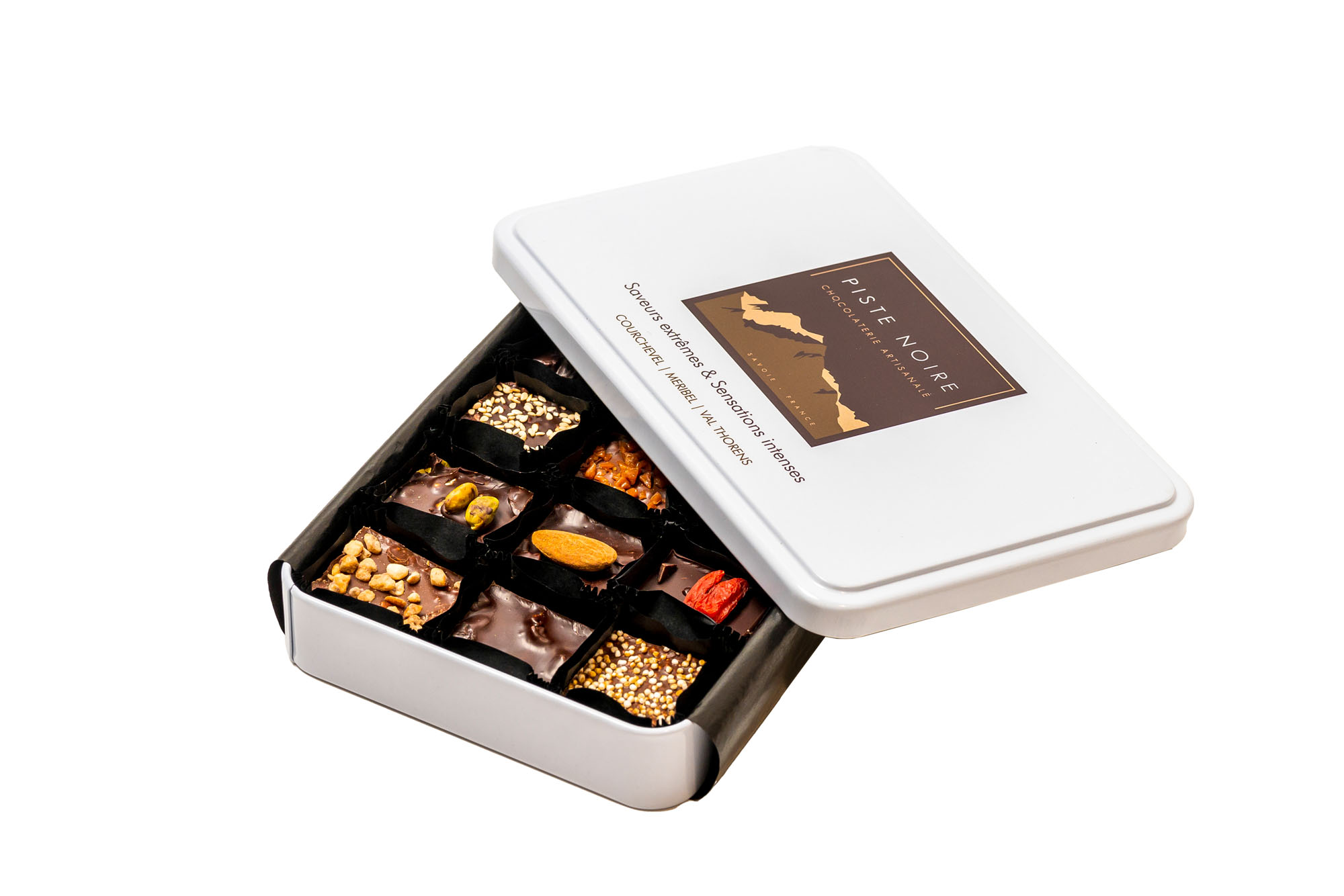 Pur produit d’artisanat, chacun d’entre eux est confectionné puis coupé à la main par la chocolatière Florencia Malbran dans son laboratoire situé dans la Vallée de Courchevel.